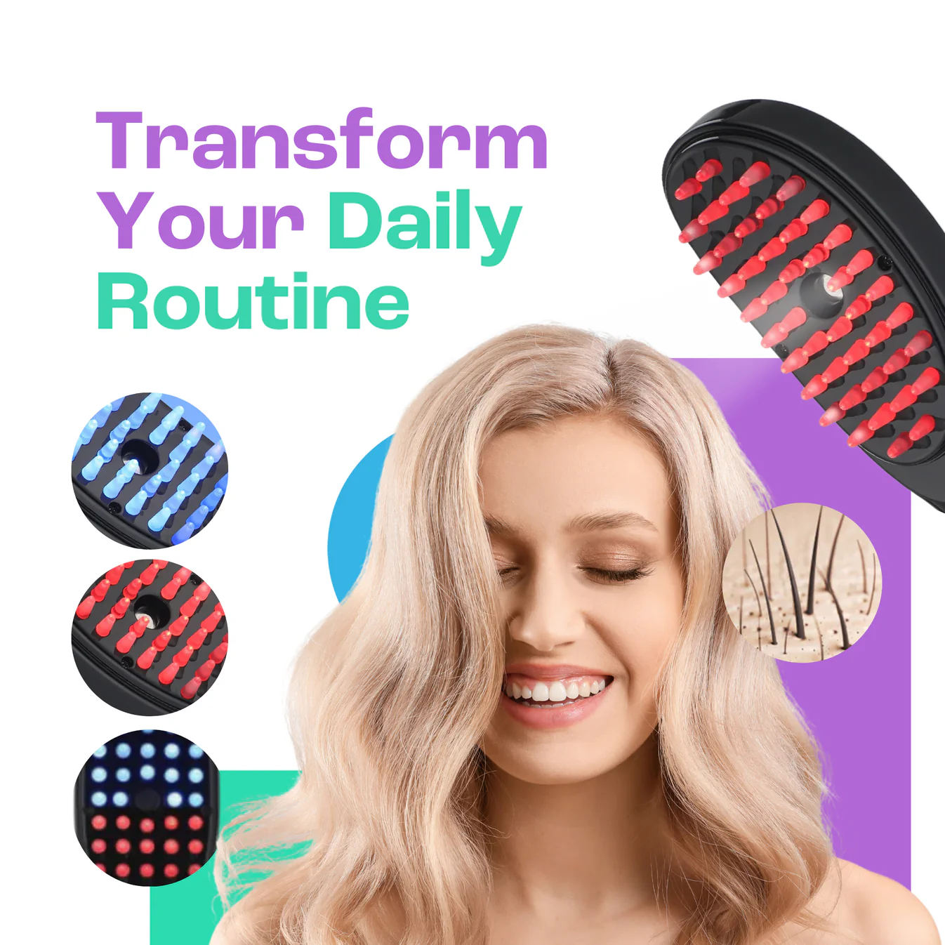 Introducing the 3-in-1 Hair & Scalp Rejuvenation Brush – your personal at-home spa treatment for a revitalized scalp and noticeably thicker, healthier hair. This isn't your ordinary hairbrush; it's a revolutionary 3-in-1 system designed to transform your hair care routine.